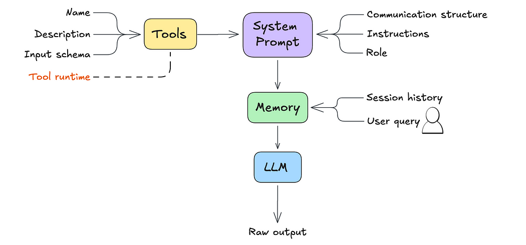 Agent = LLM + Memory + Planning + Tools + Orchestration