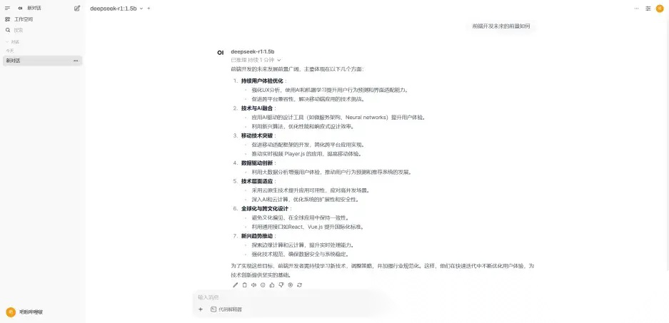 ollama 自带的交互界面不够友好直观,可以选择使用开源的可视化 AI 界面工具进行本地部署,这类工具集成了问答交互、模型切换、聊天记录、信息检索等诸多功能,小编这里选择的是 open webui