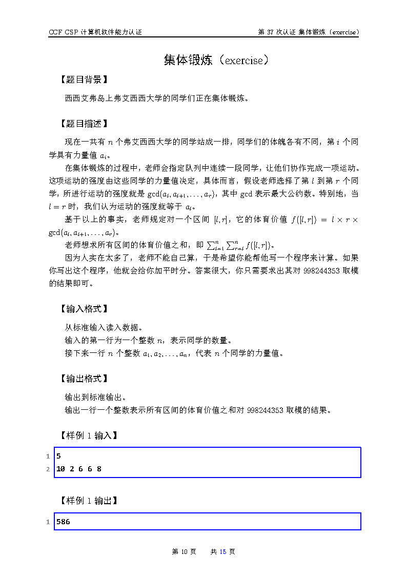CCF-CSP 37-4集体锻炼【C++】考点:数学(最大公因数gcd特性),常数优化