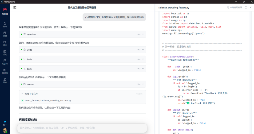 AlphaClaw是熵简科技推出的专属金融投研AI工具,搭载于AlphaEngine平台之上,是专为金融投研场景打造的精细化AI产品。