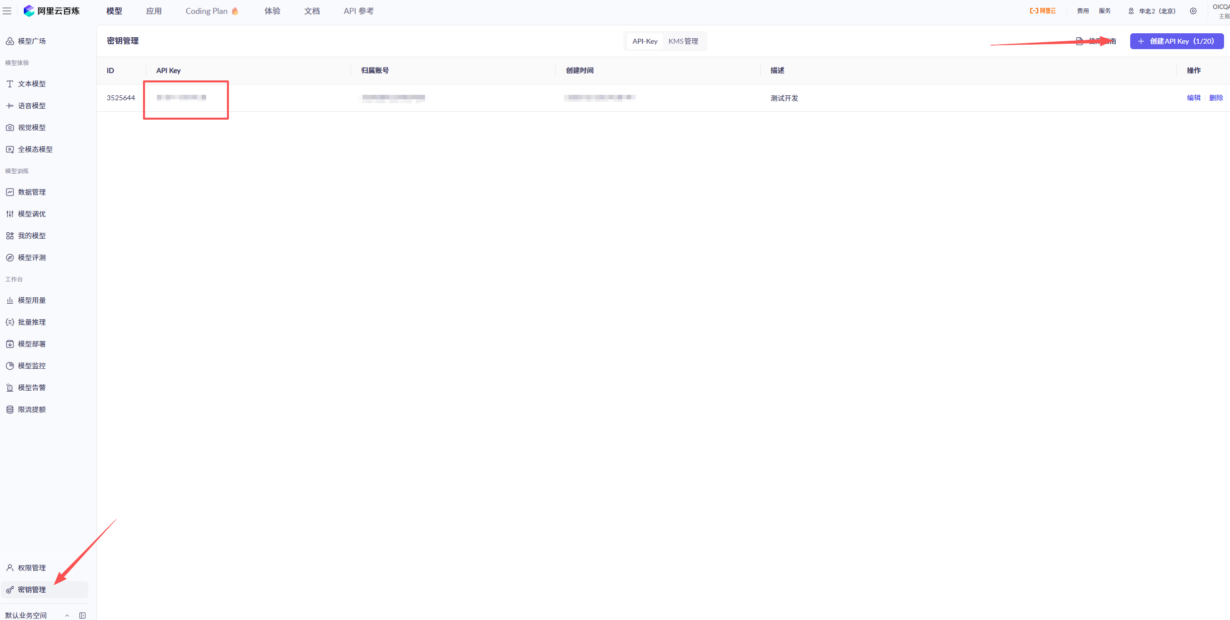 在密钥管理中创建密钥,一定要妥善管理。