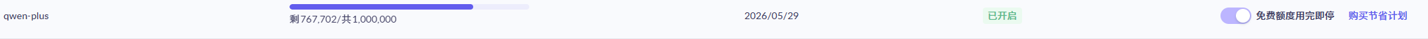 可以看到阿里每个模型提供100W次Token用量(但是这个量给OpenClaw龙虾玩依然还是根本不够,虾饵料完全不够吃),记得一定要开启免费额度用完即停(不然一不小心就会有天价账单)