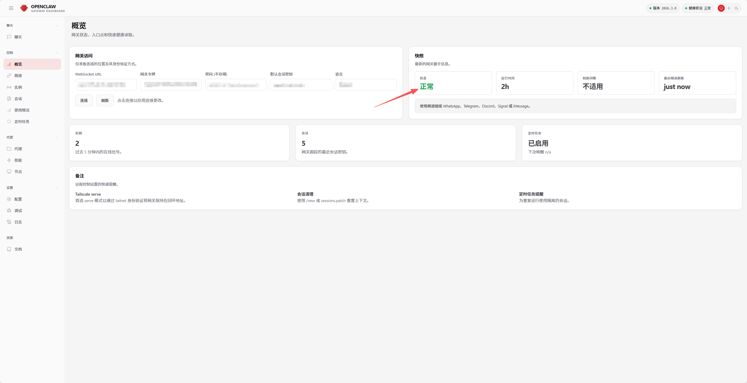 开放完成后,即可访问OpenClaw正常的控制面板了。去宝塔面板中复制访问路径。