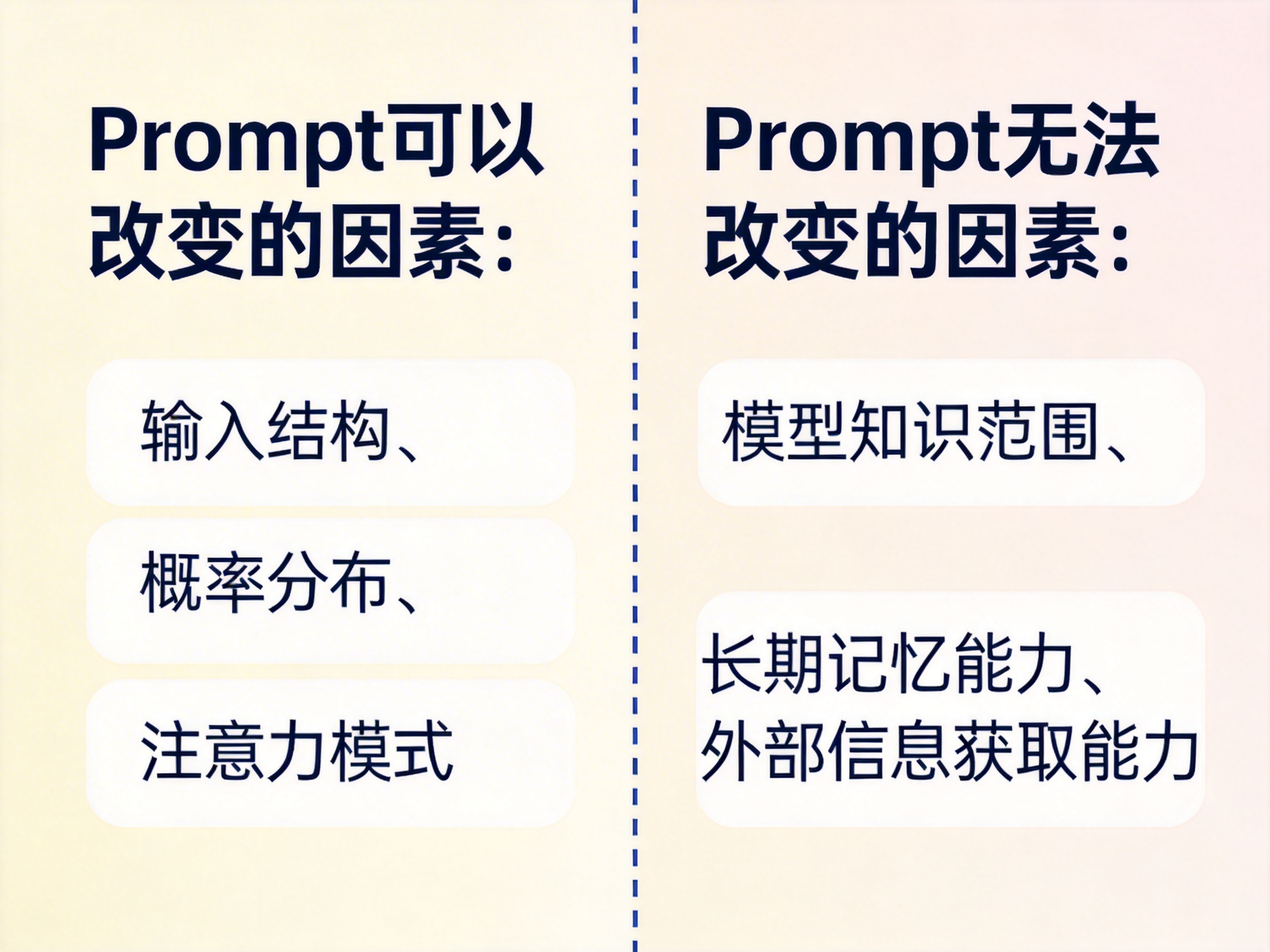 Prompt 可以改变 “模型如何回答”,但不能改变 “模型知道什么”。