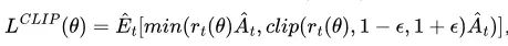选择最小值: 1)基于新策略直接计算出来的值,2)经过剪辑后的值,保持训练的稳定性。