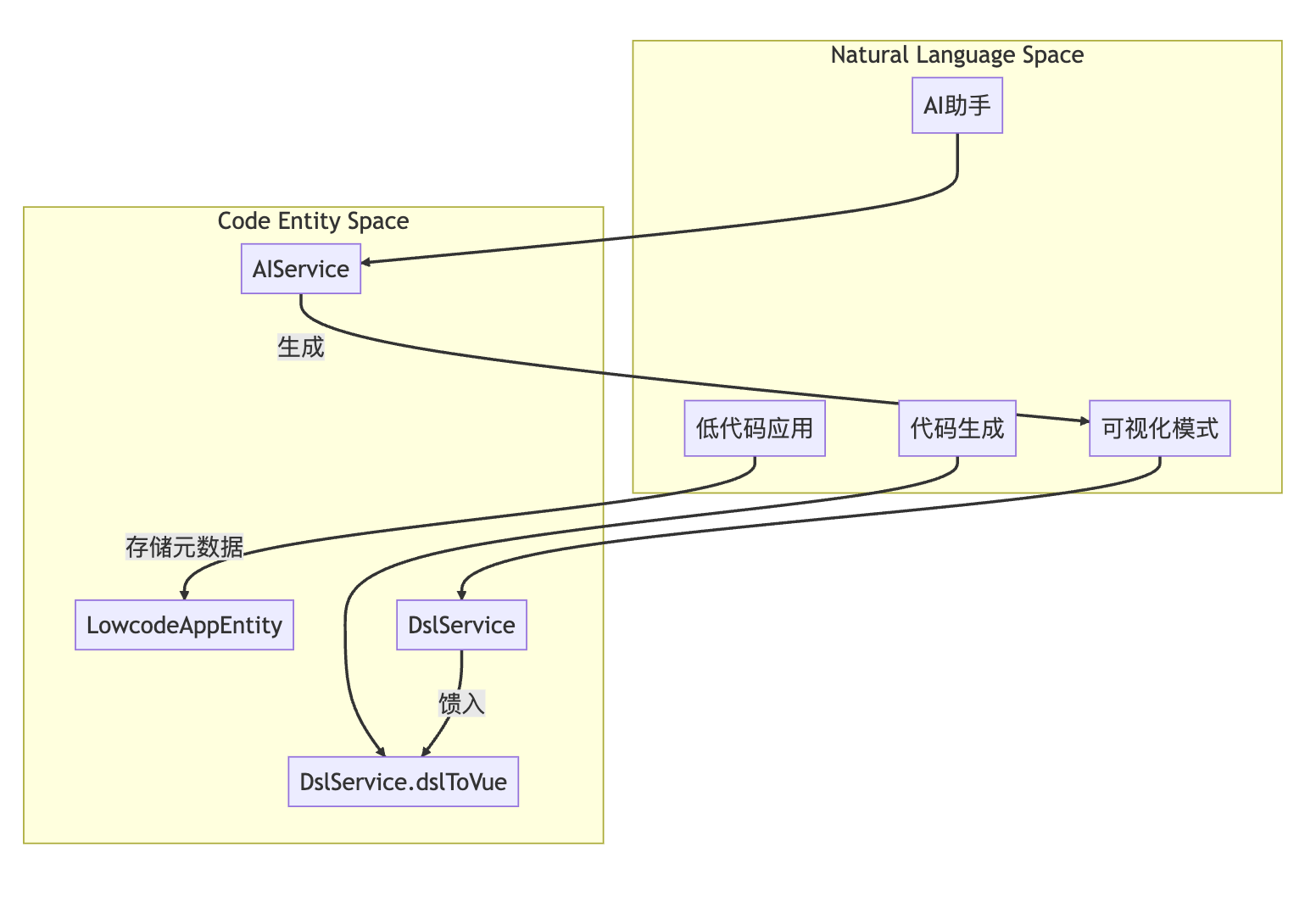 LowcodeAppEntity)、“我的模板”(TemplateEntity)和“协作者”。 - 路由:前端中定义在