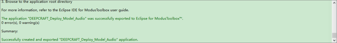 在 “Application Selection” 页面,搜索 “mtb-example-ml-deepcraft-deploy-ready-model”(即官方 AI 模型部署示例工程,含鼾声识别模型),点击 “Create”;要注意一点是,这个模型工程不支持keil,我就选择了官方的开发平台eclipse。