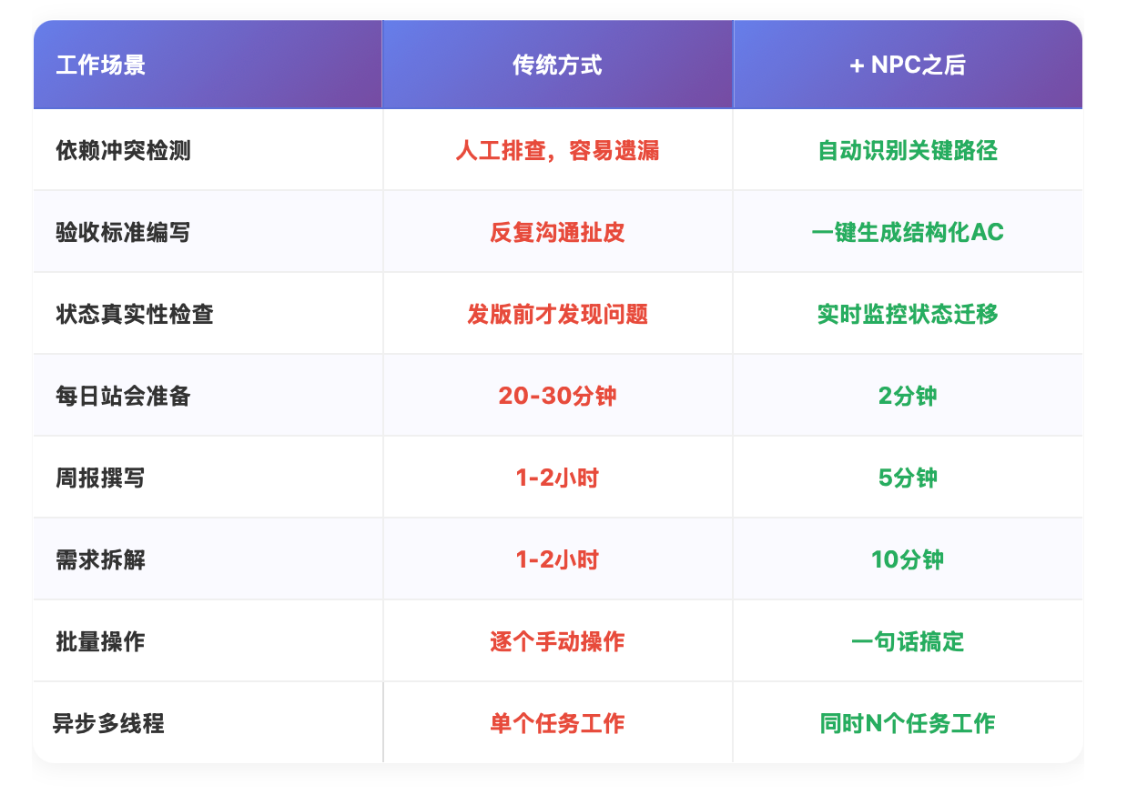 💡 提效亮点:验收标准不清晰 = 反复返工。NPC帮你把模糊需求变成可检查的checklist!