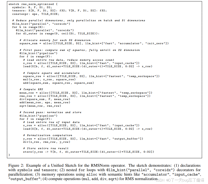 图 2 给了 RMSNorm 的 Unified Sketch 示例。