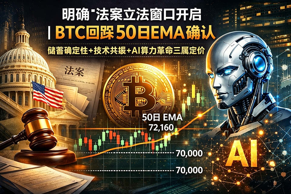 CLARITY法案立法窗口开启|BTC回踩50日EMA确认:监管确定性+技术共振+AI算力革命三重定价