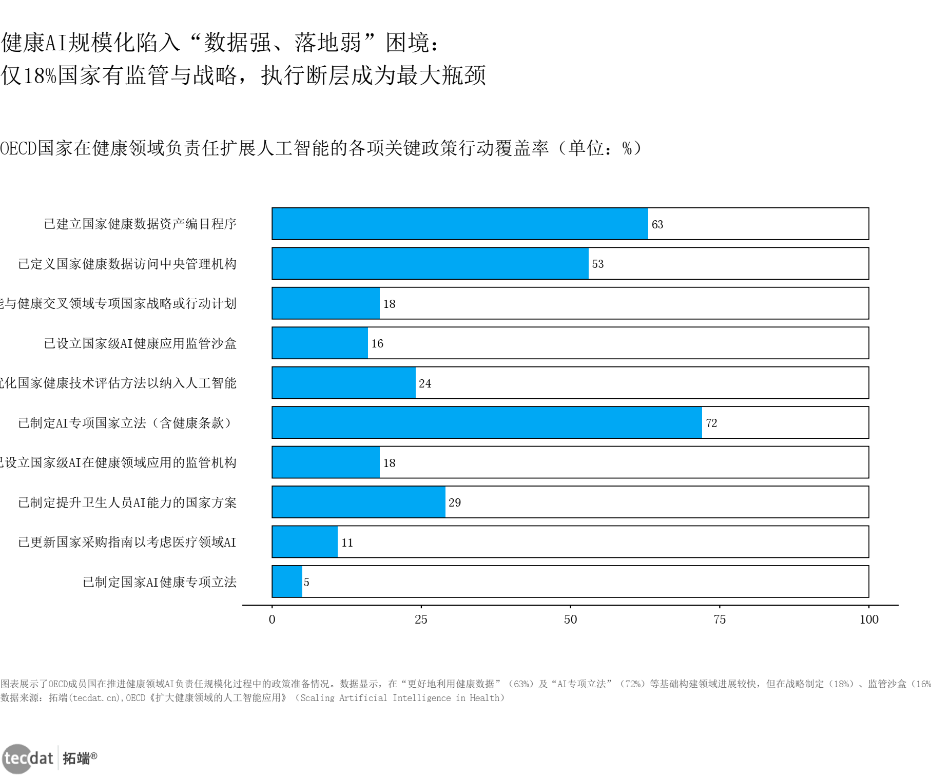 引用图表:健康AI_OECD国家政策行动覆盖率横向比例条形图表1