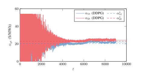- 发电公司(智能体)通过DDPG算法学习竞价参数α