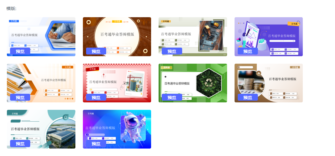 这是百考通AI的亮点之一。其模板库经过精心分类,特别设置了“学术答辩”、“毕业设计”、“开题报告”等垂直场景。