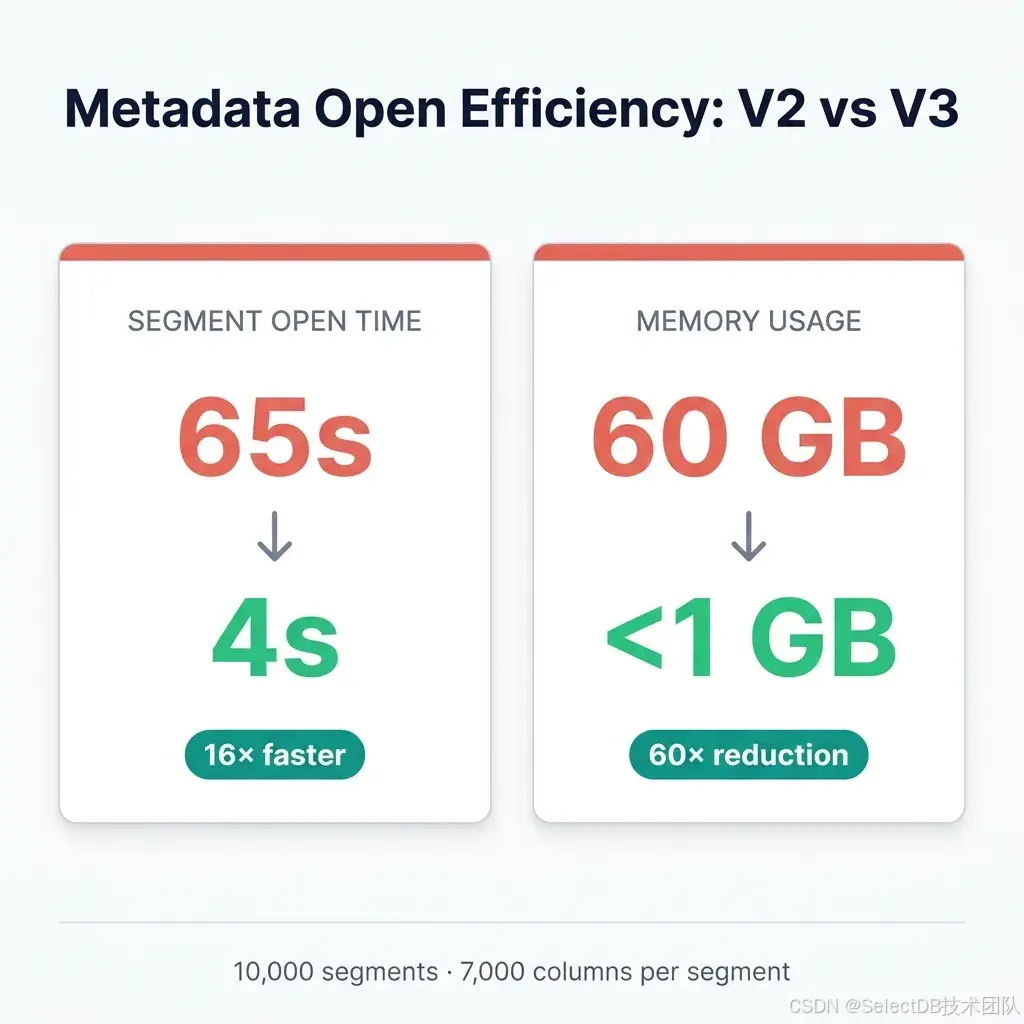 列压缩与编码优化:引入更高效的二进制编码与预解码机制,降低运行时解码成本;默认压缩逐步切换至 ZSTD,在压缩率与解压性能之间取得更优平衡。在宽表与明细查询场景中,体现为更低存储占用与更优冷读性能。