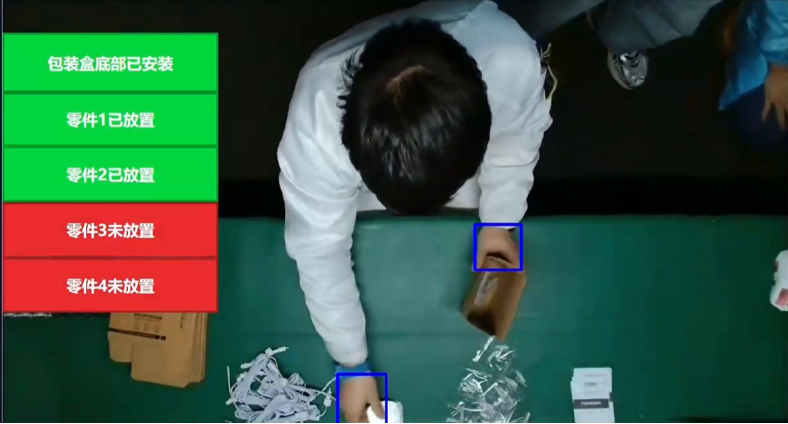 - 算法并非简单判断手部是否出现在区域内,而是分析一个完整的动作序列:手部从区域外进入 -> 在区域内短暂停留(模拟抓取)-> 手部离开区域。只有当这一系列动作被检测到,系统才判定“零件A已被成功拿取”,并允许流程进入“安装零件A”的动作确认或自动跳转到下一步。